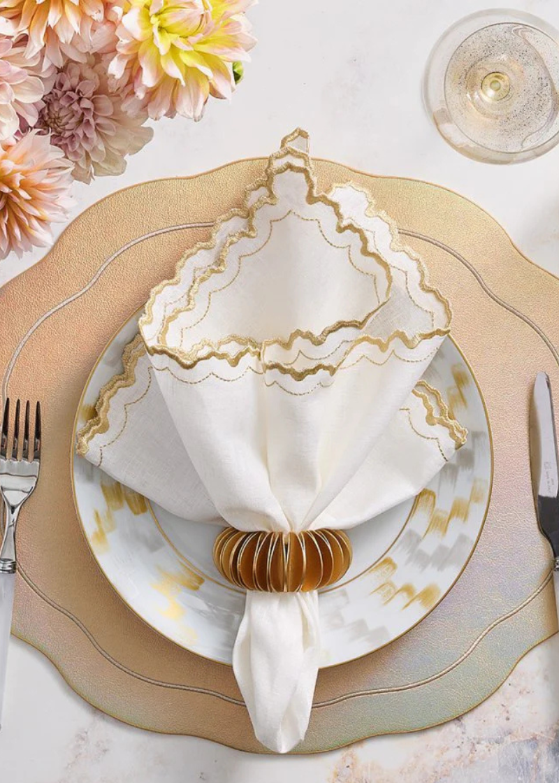 Use a soft toothbrush with mild soapy water for plastic and glass beaded napkin rings, if necessary.