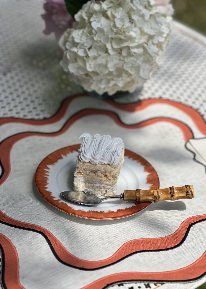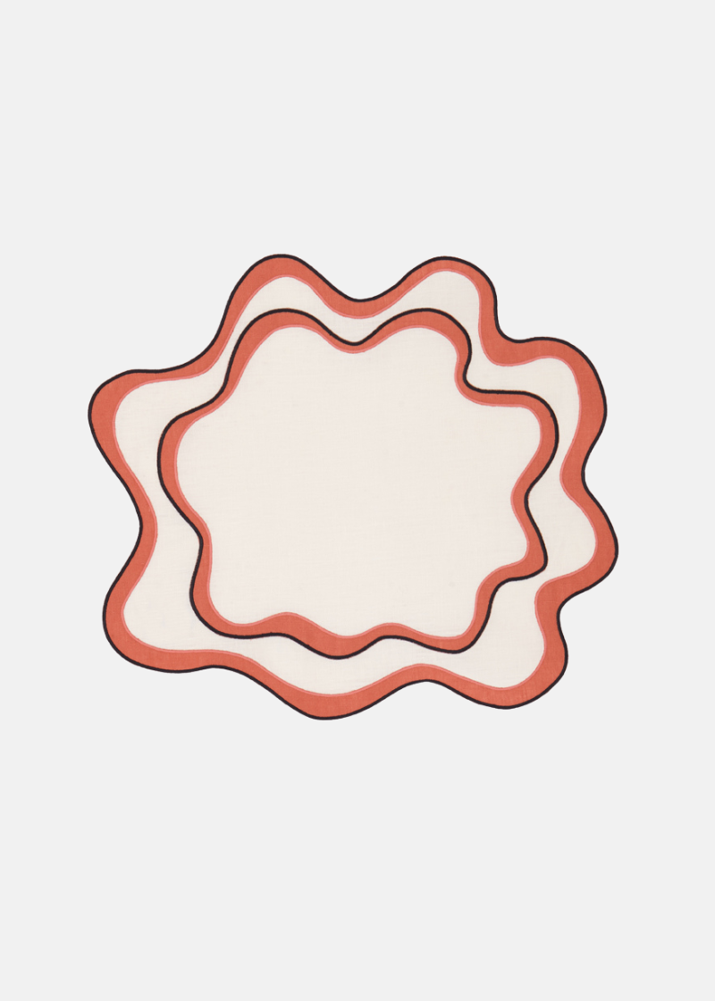 Established in 1880, Los Encajeros is a luxury linen family brand based in Bilbao, Spain. Each piece is handmade by craftspeople using only the highest quality material. The Sena is an oval linen placemat with linen appliqués and irregular wave-shaped edges.