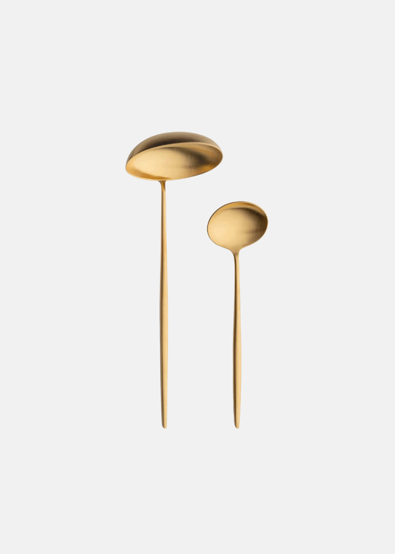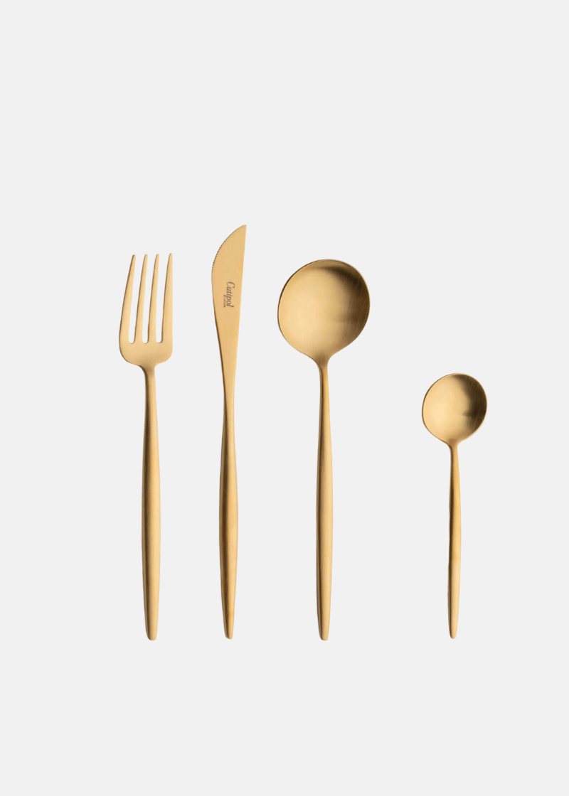 Their Moon collection is simple yet elevated with the matte gold finish adding an extra level of sophistication to any meal. The Set of 24 includes 6 settings of a Dinner fork, Dinner knife, Tablespoon & teaspoon.