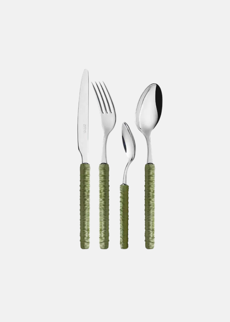 Neva Cutlery provides upscale tableware perfect for sophisticated dining. Crafted from high-quality 18/10 polished stainless steel with a unique handle made from a specially designed synthetic rattan, this set adds a touch of refined country charm to any table. Plus, it's conveniently dishwasher safe. Proudly made in Italy.