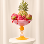 These fruit platters make an excellent centrepiece for any celebration, as well as a bold statement for your table every day. Made from blown and solid worked glass, they're skilfully created and sure to be eye-catching. The rose platter has a rose bowl, gold and pale pink stem and mandarin foot.