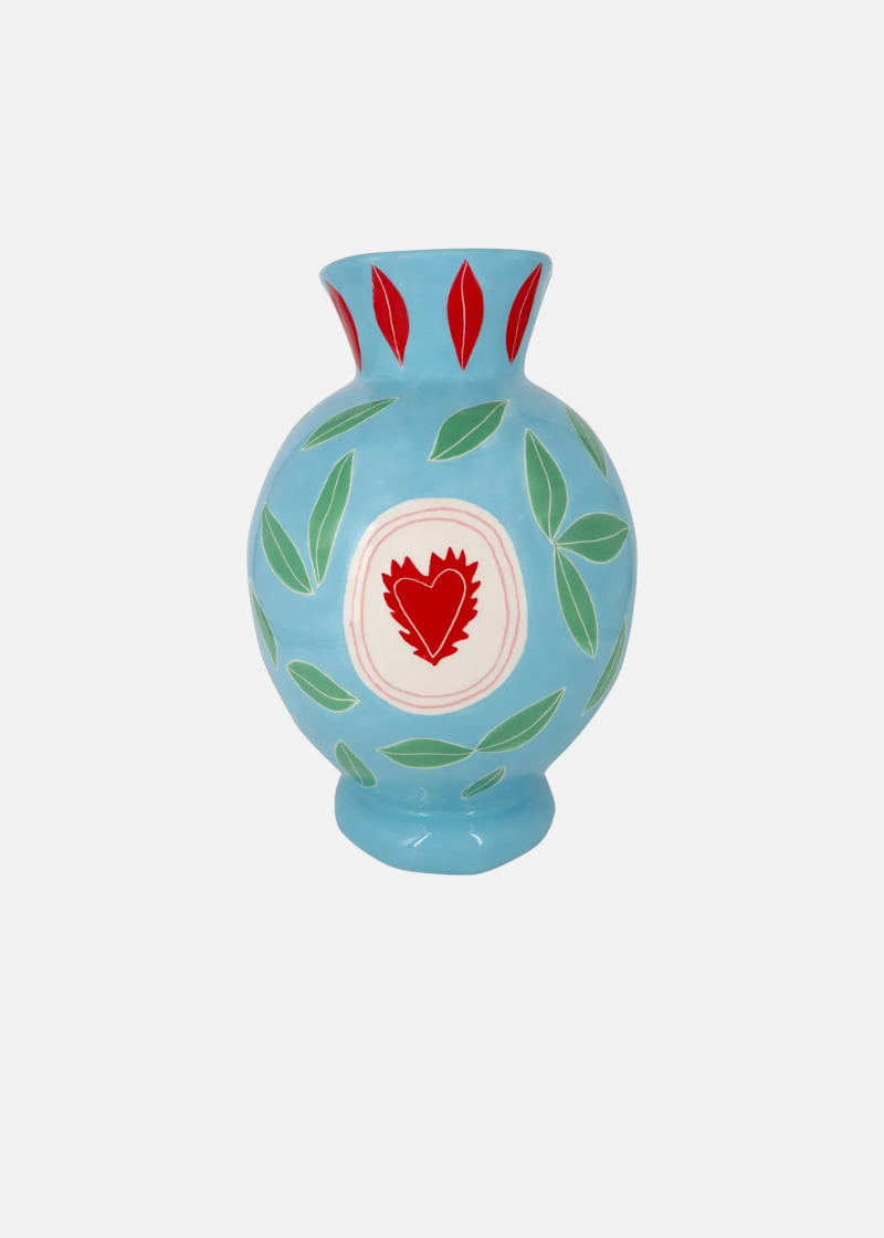 Featuring the unmistakable style of Laetitia Rouget, this bold and beautiful vase showcases abstract tulips that will elevate any surface. Use it as a standalone ornament or to display a bouquet of flowers. Please keep in mind, this handmade product may have slight variations in appearance.