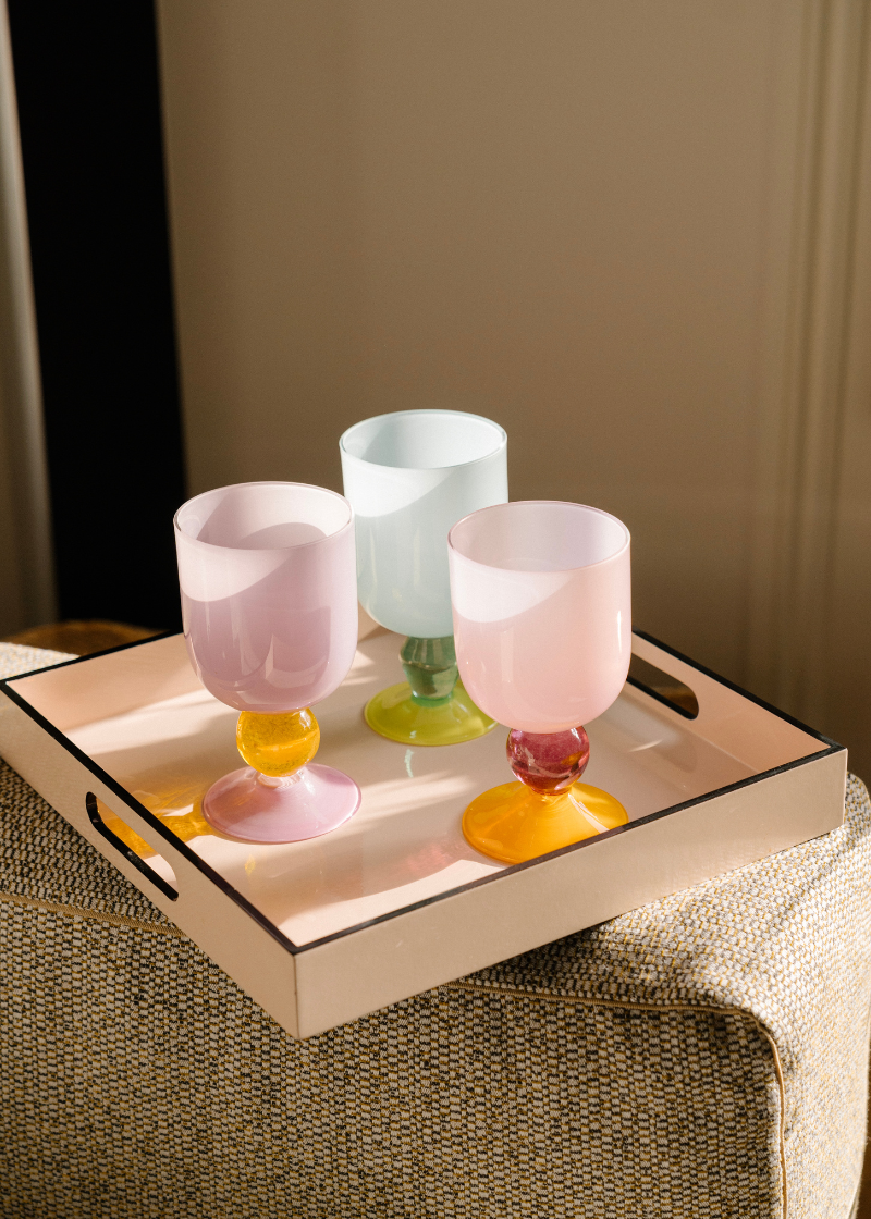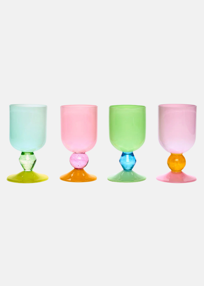 The perfect glass for water, wine and smoothies. Their pastel tones are a beautiful addition to any tablescape.