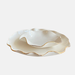 Porcelain Dinner Plate with Scalloped Edge and Gold Lustre Detail matched with a Porcelain Wave Bowl with Gold Lustre Detail. Each one individually handmade.