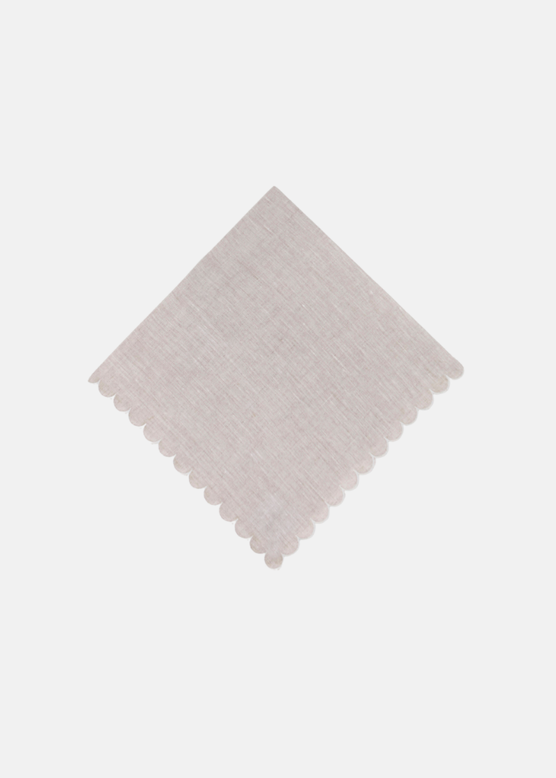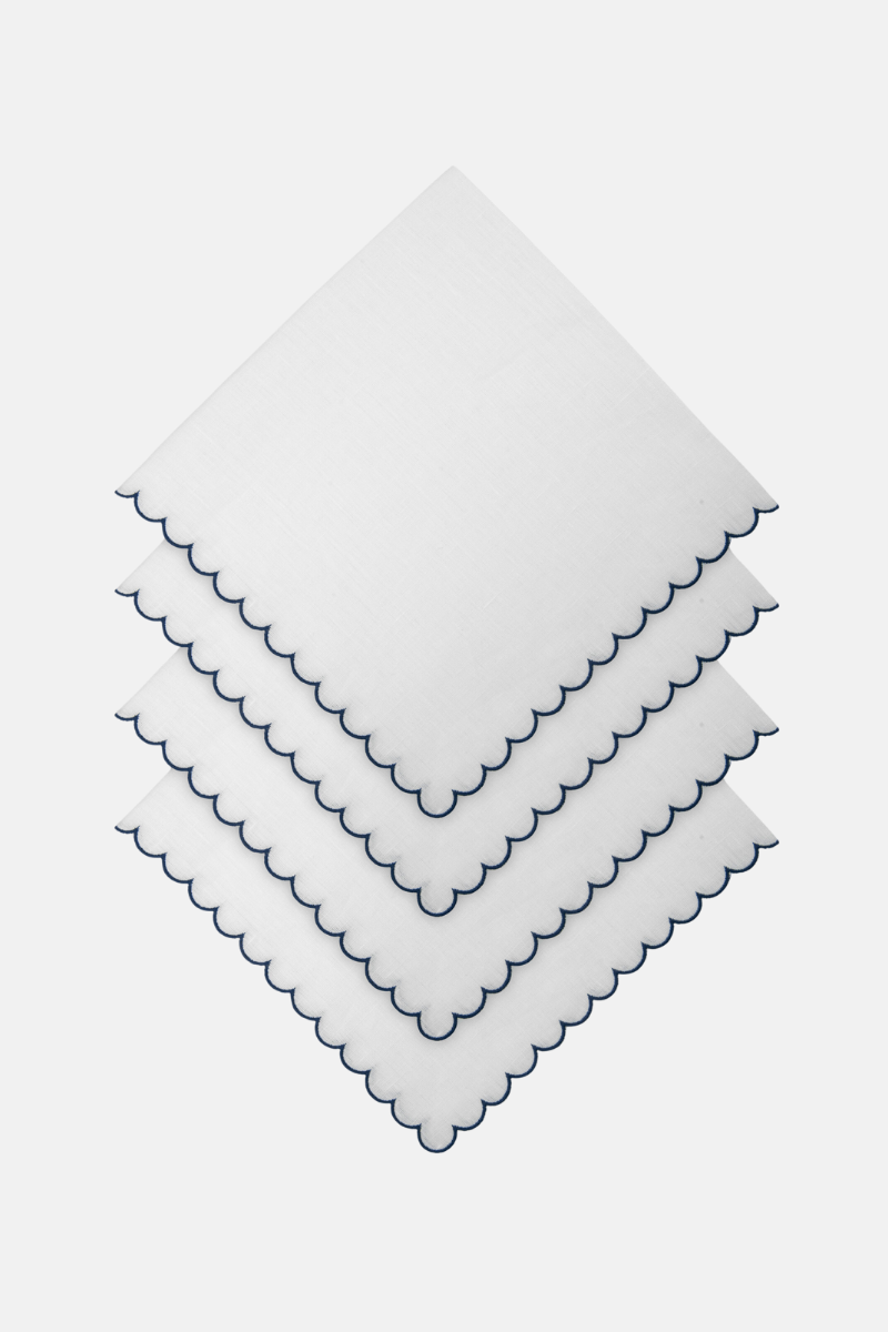 Established in 1880, Los Encajeros is a luxury linen family brand based in Bilbao, Spain. Each piece is handmade by craftspeople using only the highest quality material. The Bilbao napkin in Navy is a Linen napkin with an embroidered scalloped trim. Matching placemats, cocktail napkins and coasters are available for an exquisite table setting.