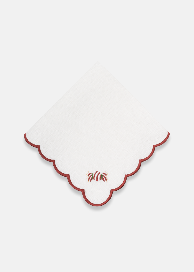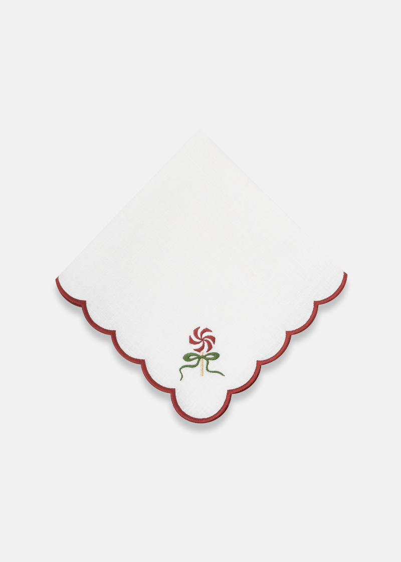Part of the "sweetest" collection, the Truffle Bee napkins are delicately embroidered snow-white linen napkins adorned with candy motifs, they add a touch of festive luxury to your holiday table. Pair them with the playful lollipops "Candy Placemats" made of faux leather in red and white with a hint of gold.