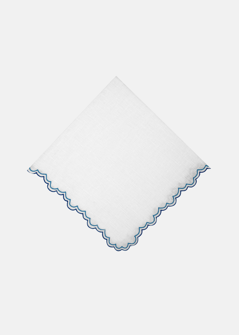 Established in 1880, Los Encajeros is a luxury linen family brand based in Bilbao, Spain. Each piece is handmade by craftspeople using only the highest quality material. The Escamas napkin is designed with a two-tone embroidered scalloped trim. Matching placemats, cocktail napkins and coasters are available for an exquisite table setting.