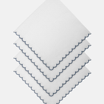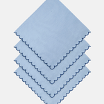 Established in 1880, Los Encajeros is a luxury linen family brand based in Bilbao, Spain. Each piece is handmade by craftspeople using only the highest quality material. The Bilbao napkin in Navy is a Linen napkin with an embroidered scalloped trim. Matching placemats, cocktail napkins and coasters are available for an exquisite table setting.