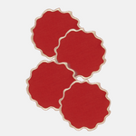 Crafted from premium linen, each coaster is delicately adorned with a champagne gold scalloped edge, traced in irregular abstract shapes.