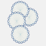 This set of linen coasters is designed with a two-tone embroidered scalloped border.