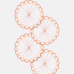 This set of linen coasters is designed with a two-tone embroidered scalloped border.