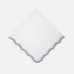 Established in 1880, Los Encajeros is a luxury linen family brand based in Bilbao, Spain. Each piece is handmade by craftspeople using only the highest quality material. The Escamas napkin is designed with a two-tone embroidered scalloped trim. Matching placemats, cocktail napkins and coasters are available for an exquisite table setting.
