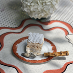 Established in 1880, Los Encajeros is a luxury linen family brand based in Bilbao, Spain. Each piece is handmade by craftspeople using only the highest quality material. The Sena is an oval linen placemat with linen appliqués and irregular wave-shaped edges.