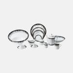 Elegant Limoges porcelain dinner set inspired by bold black spikes which add a rebelious punk-inspired edge to each piece. The addition of the refined gold trim balances out the daring design and creates a signature collection which embodies the ethos of Molecot.