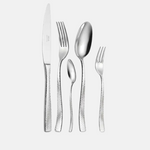 Enhance your dining experience with Neva Cutlery's elegant and sophisticated tableware, made in Italy. Crafted from 18/10 polished hammered stainless steel, each piece offers a 3 mm laminated and forged knife for a refined and stylish look. Plus, it is dishwasher safe for easy cleanup.