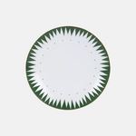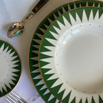 Elegant Limoges porcelain dinner set inspired by bold green spikes which add a rebelious punk-inspired edge to each piece. The addition of the refined gold trim balances out the daring design and creates a signature collection which embodies the ethos of Molecot.