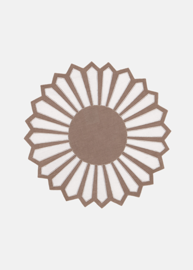 Established in 1880, Los Encajeros is a luxury linen family brand based in Bilbao, Spain. Each piece is handmade by craftspeople using only the highest quality material. The Gernika Sol is a round placemat with linen appliqués and pointed edge finish.