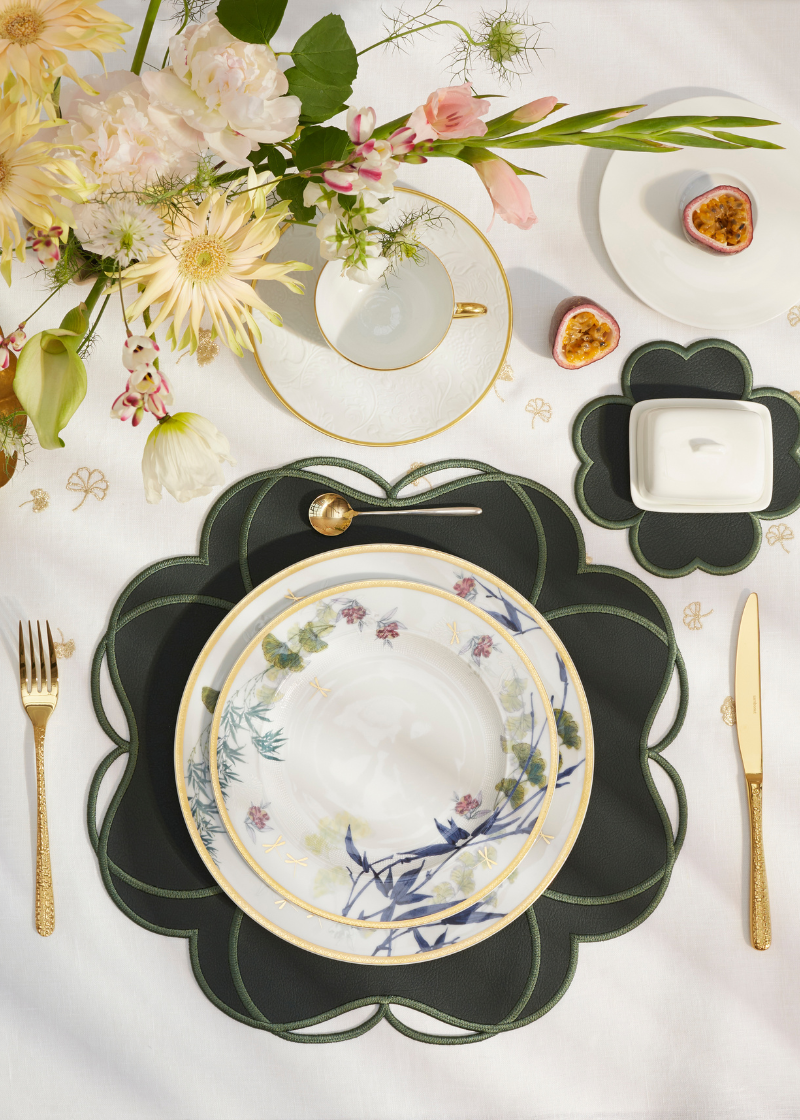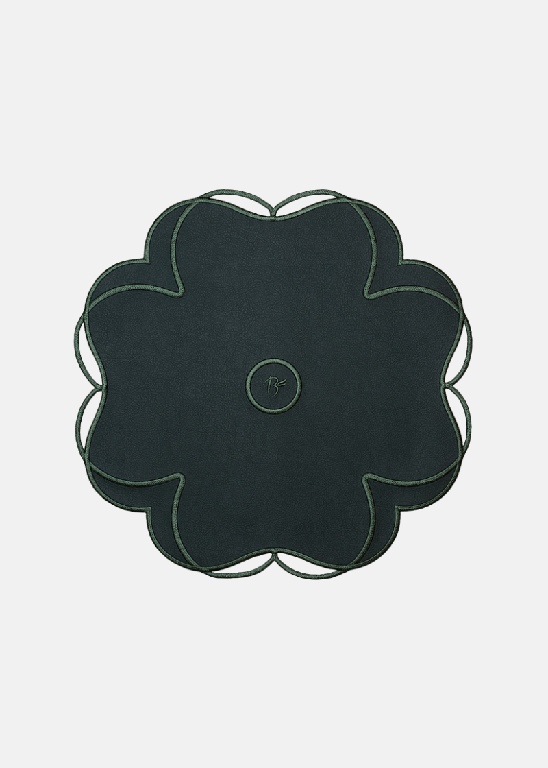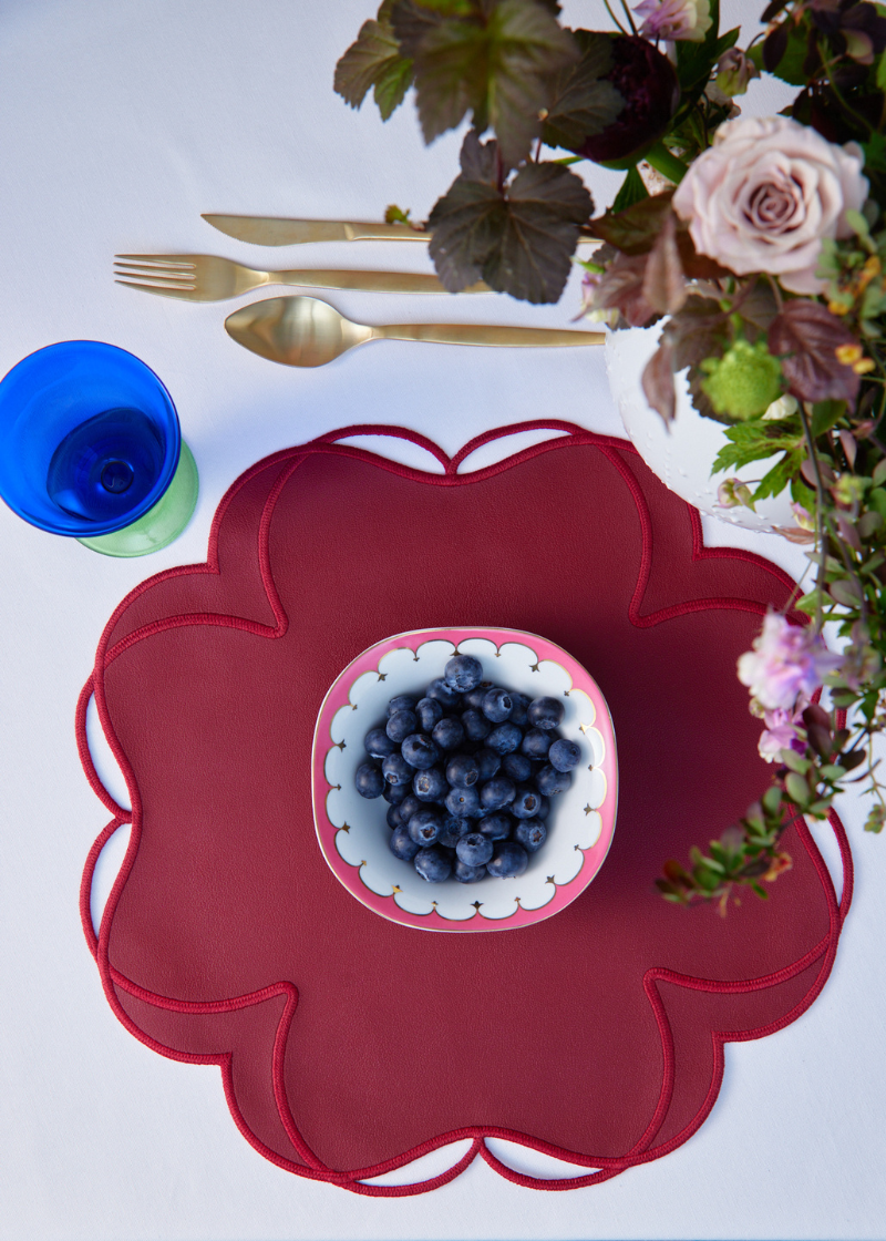 The Jardin collection by Truffle Bee is a homage to the exquisite gardens of Versailles and Fontainebleau. The flower-shaped placemats boast perfect symmetry and vibrant colors, captivating those who lay eyes on them daily. Made of faux leather, these placemats are incredibly low-maintenance.
