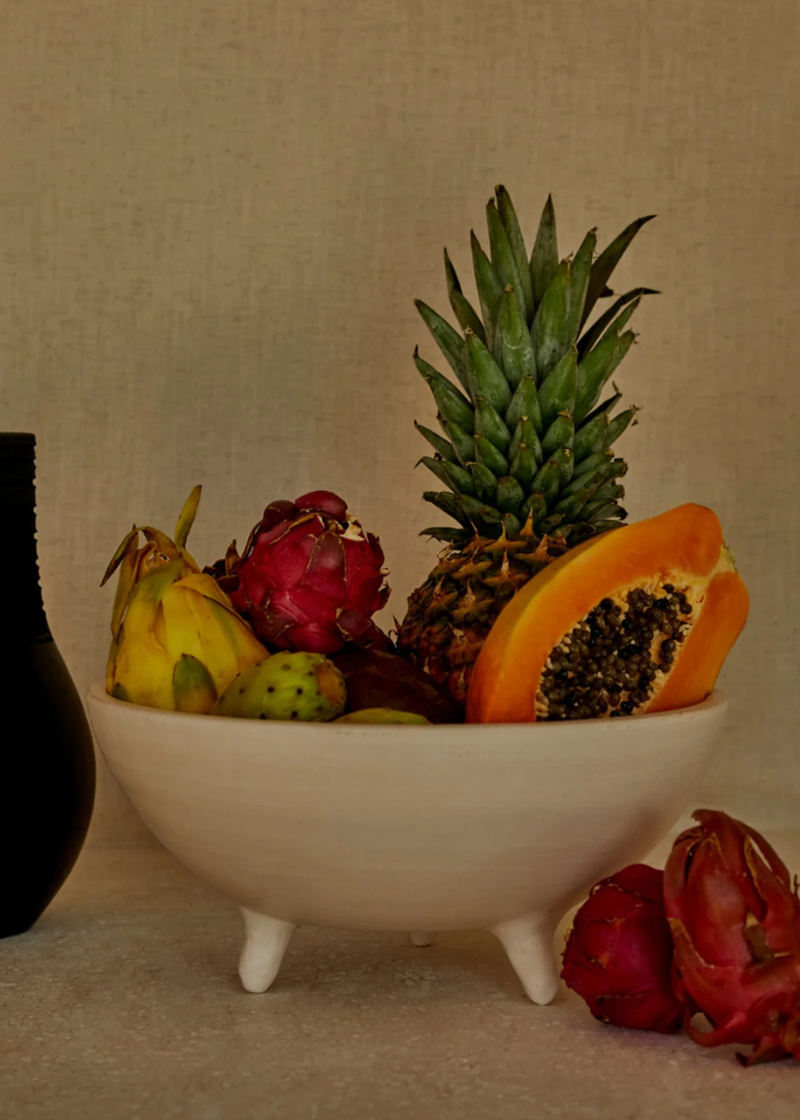 This three-legged bowl has a distinct shape and can be used as either a salad bowl, fruit bowl or even a decorative bowl elsewhere at home.