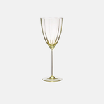 The Luna Wine Glass, expertly hand-crafted and mouth-blown, adds contemporary sophistication to your dining experience. Its bowl showcases optic textures that play with light, creating captivating reflections. Crafted from colored glass in the Czech Republic, each piece is unique. Pair this set of four citrine glasses with the matching flute and tumbler or combine with sapphire and green for a personalized collection.