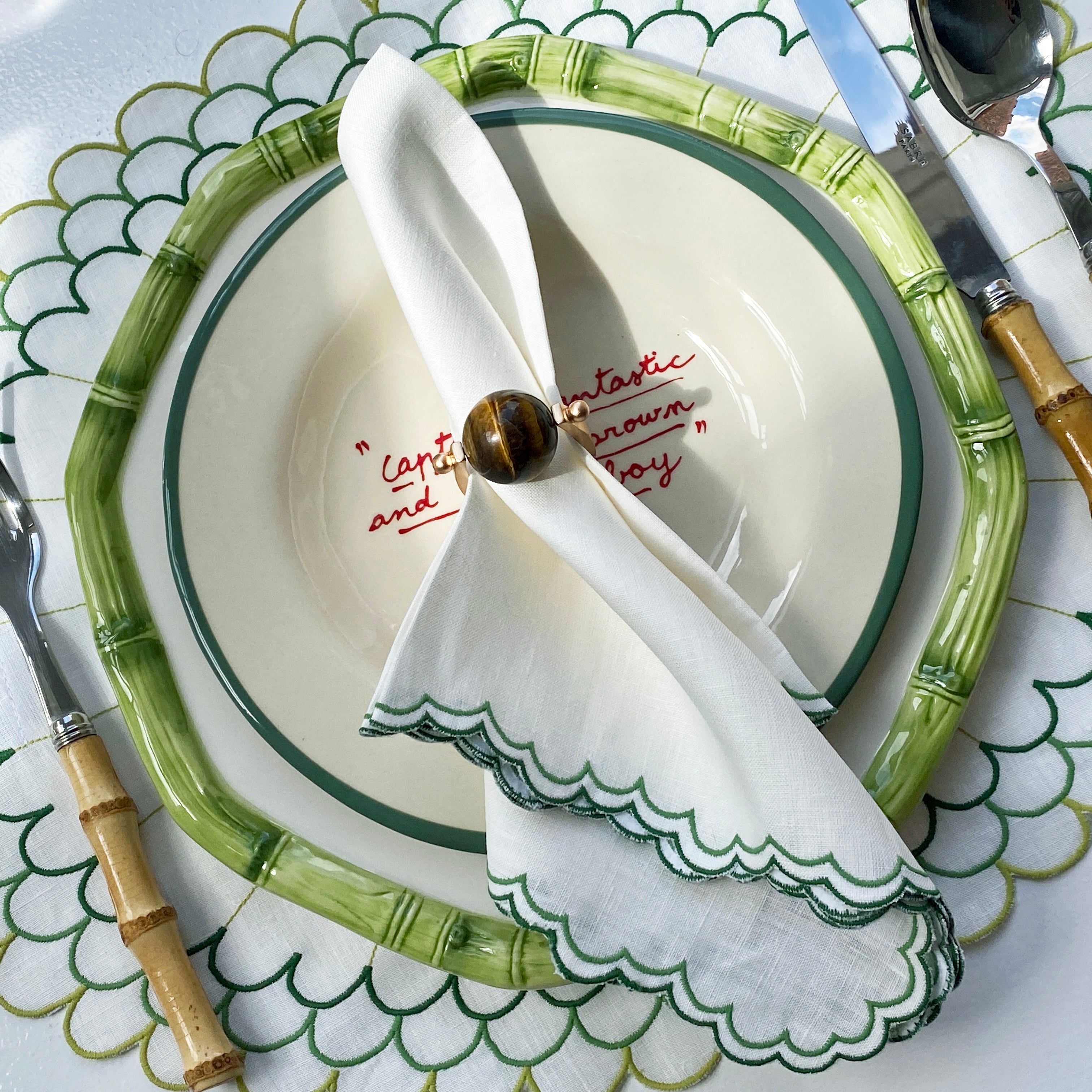Styled by our in-house stylist, this look is perfect for a weekend brunch or casual dinner. We haven't included any glassware but something simple within the white/green or beige family would go well.
