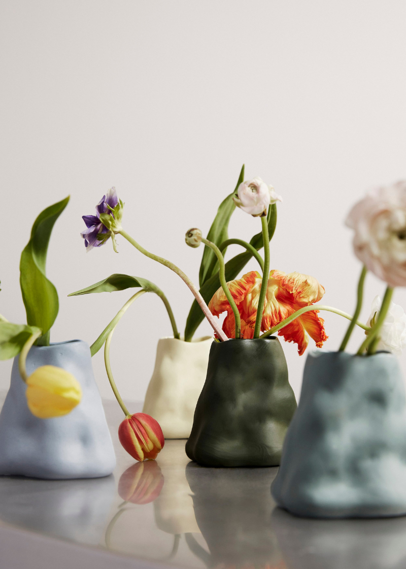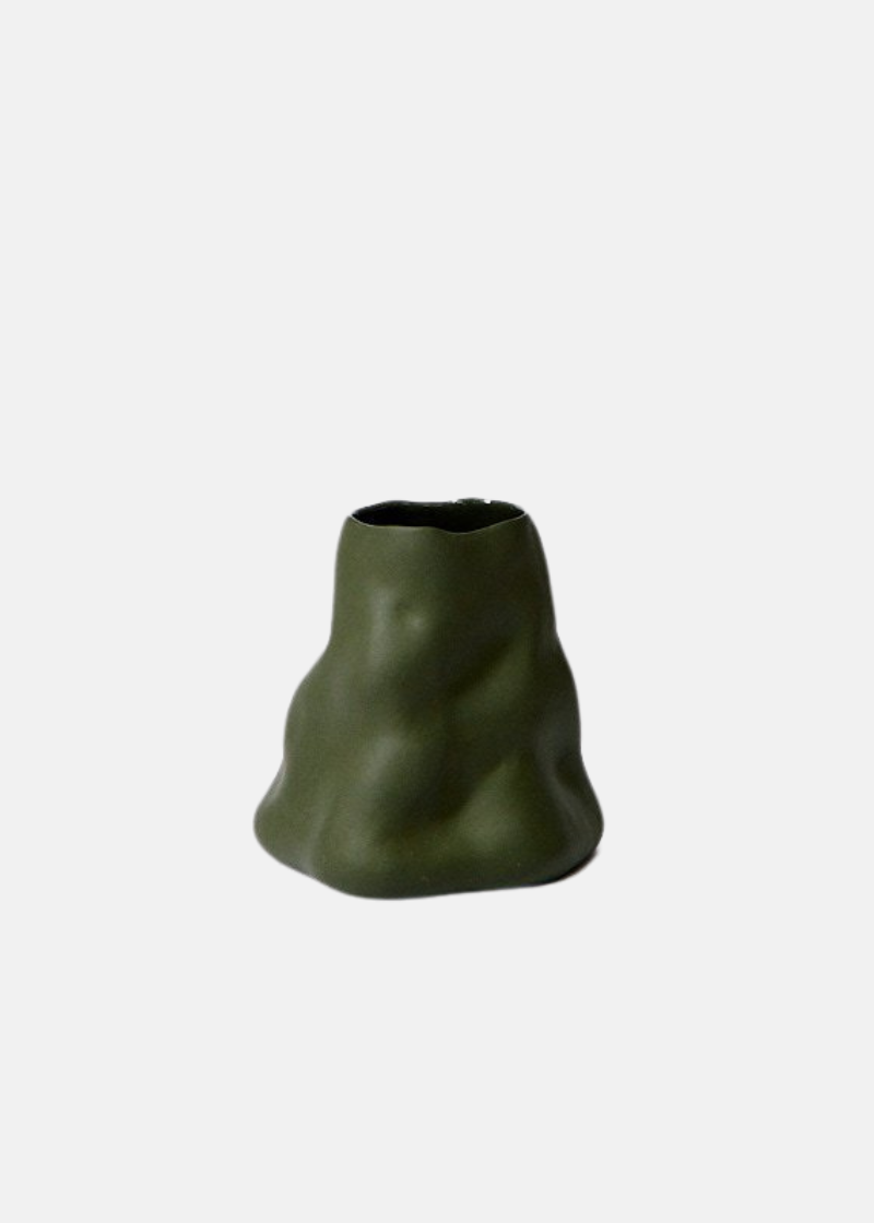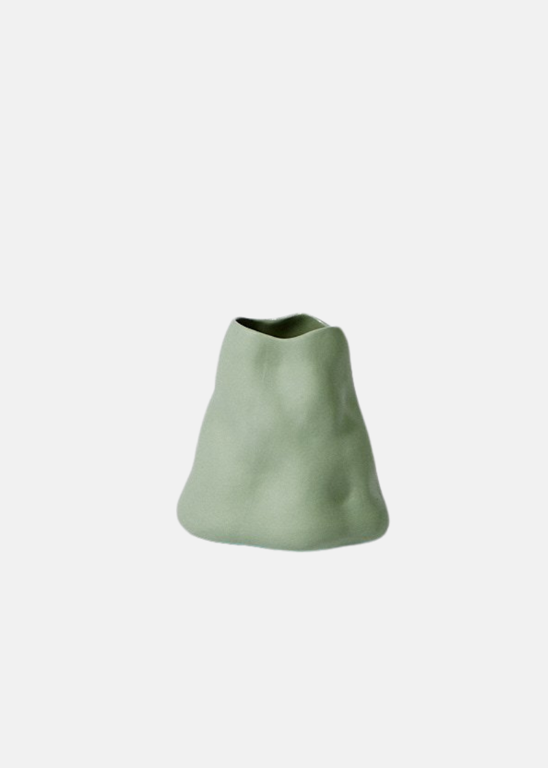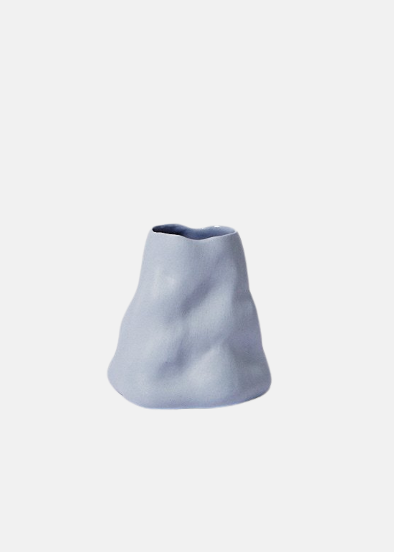 This porcelain vase is perfect for single stems or small wild flower posies. It comes in several colors and its surface dances under dabbled light, creating a sculptural effect whether it's being used as a vase or displayed on a shelf. The interior is glazed while the exterior has a raw porcelain satin finish.