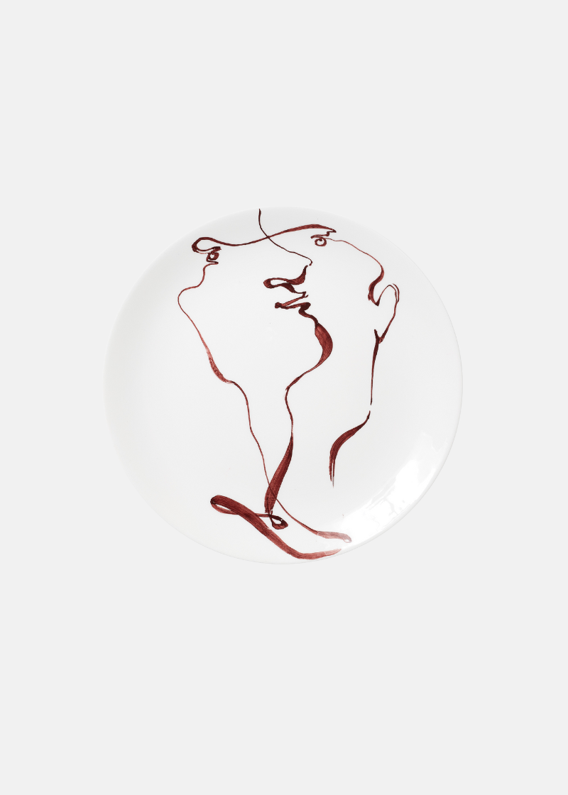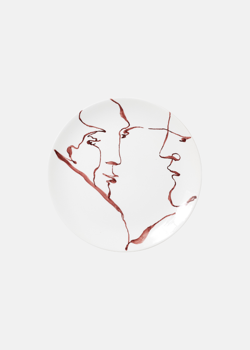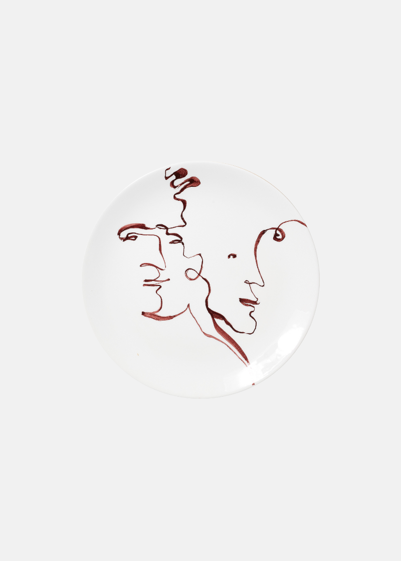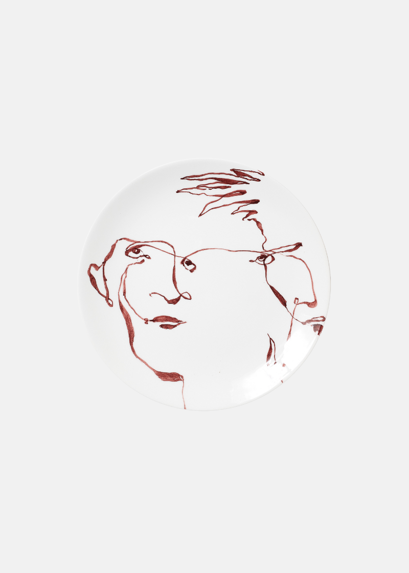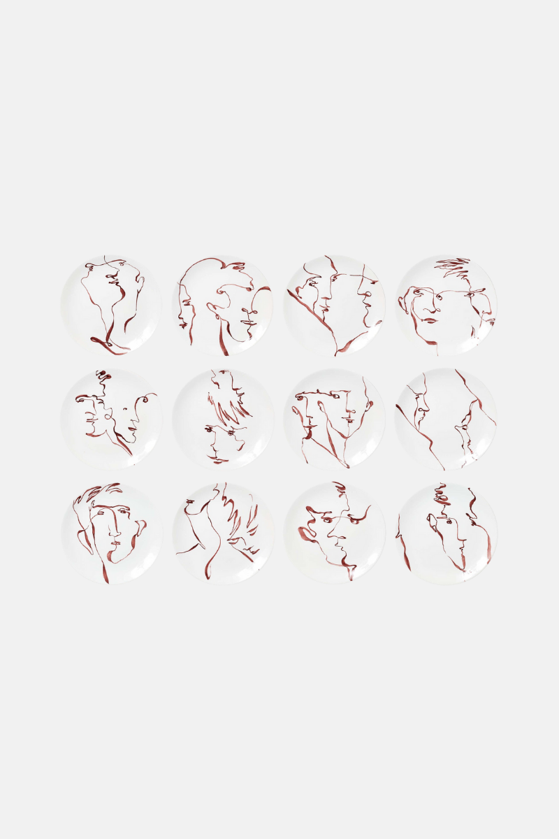In this collection, the plate's graphic space is merely a fleeting moment: the lines that outline the faces, formed through a continuous brushstroke, stretch beyond the borders in a mysterious exchange between intricate eyes, lips, and jawlines - inviting the mind to ponder their thoughts and conversations.