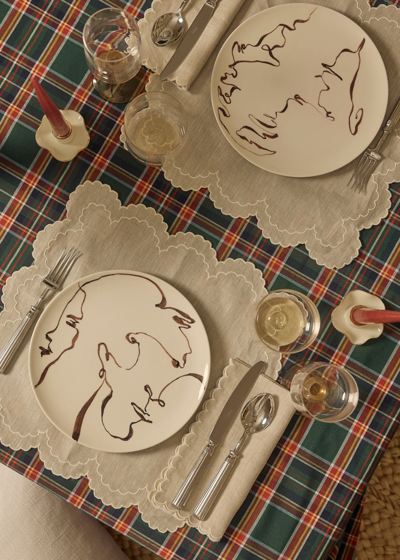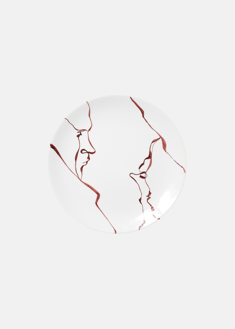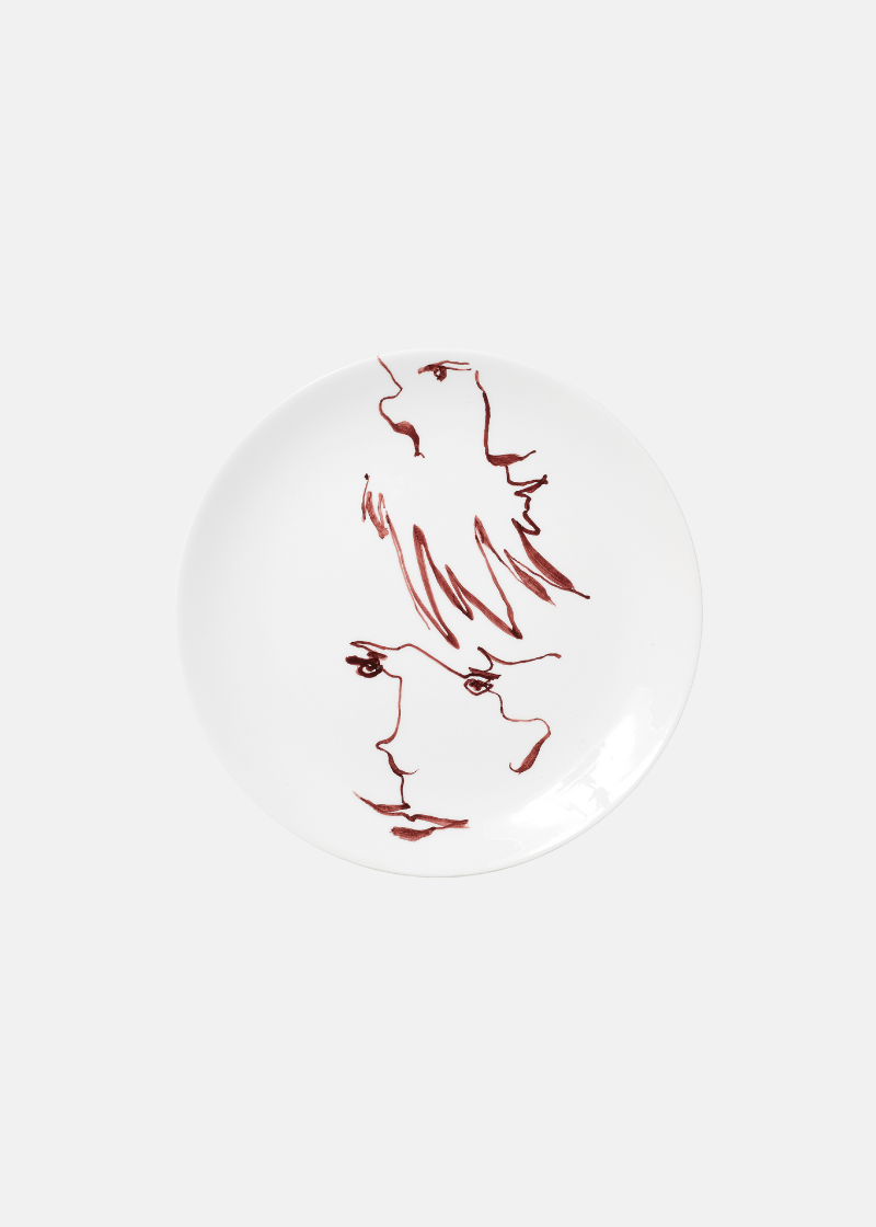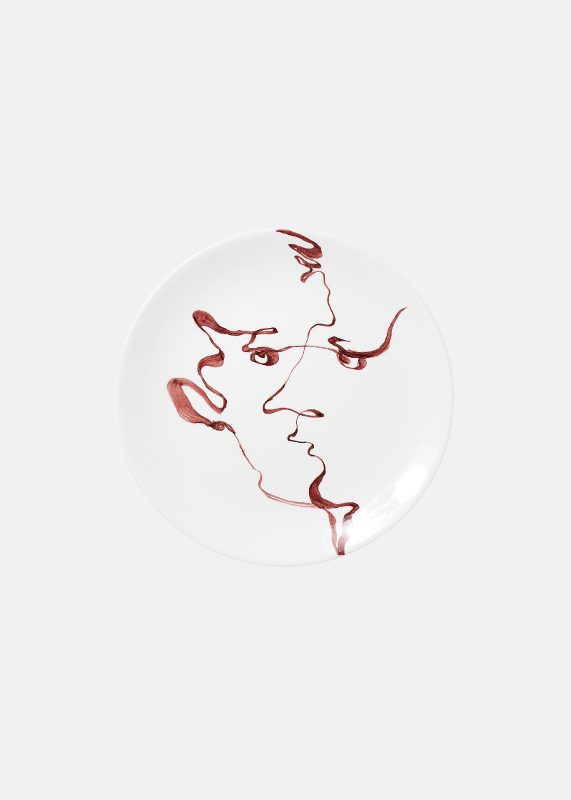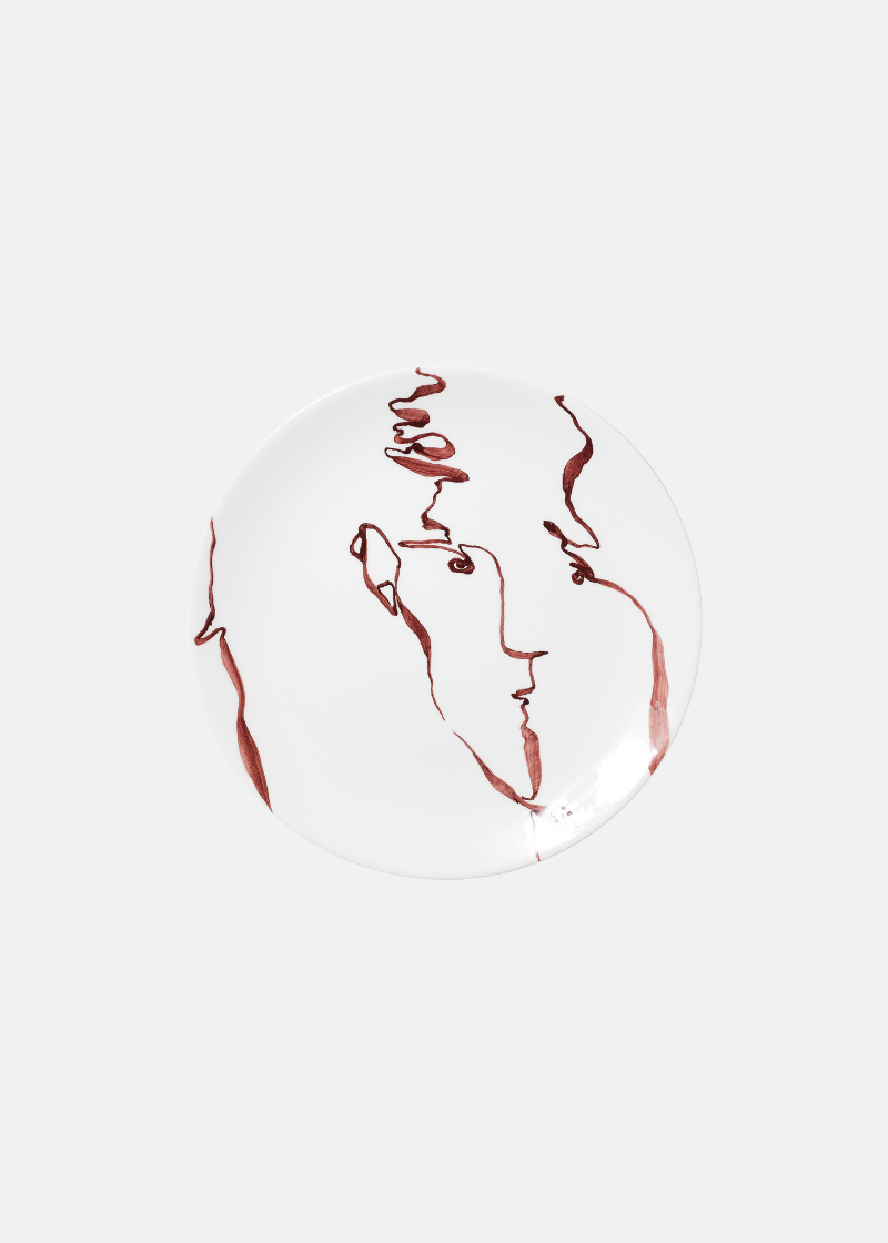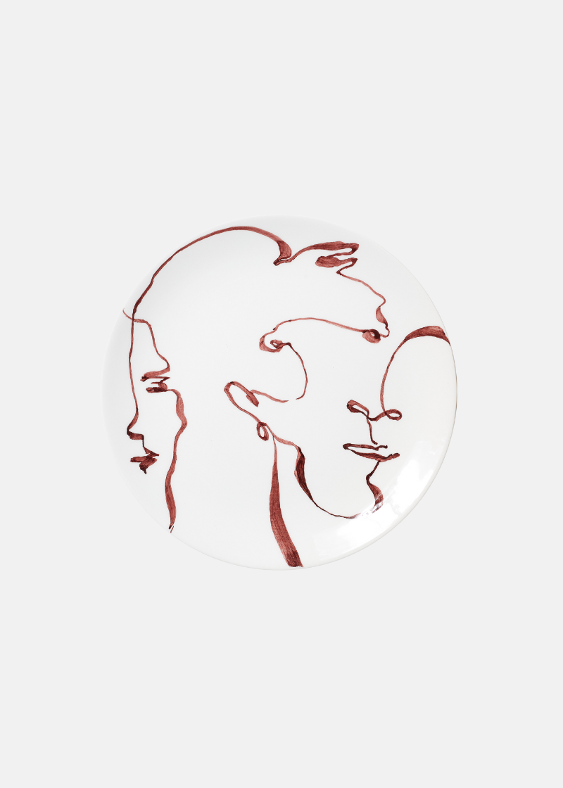 In this collection, the plate's graphic space is merely a fleeting moment: the lines that outline the faces, formed through a continuous brushstroke, stretch beyond the borders in a mysterious exchange between intricate eyes, lips, and jawlines - inviting the mind to ponder their thoughts and conversations.