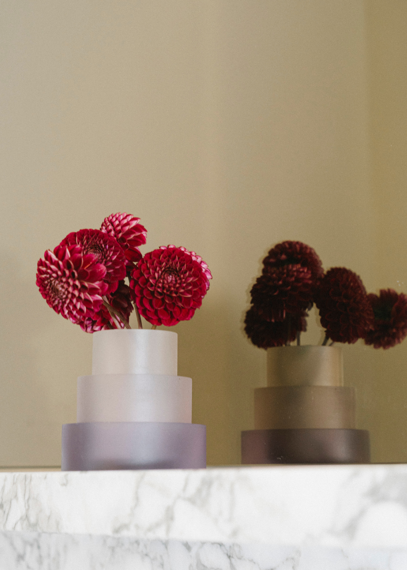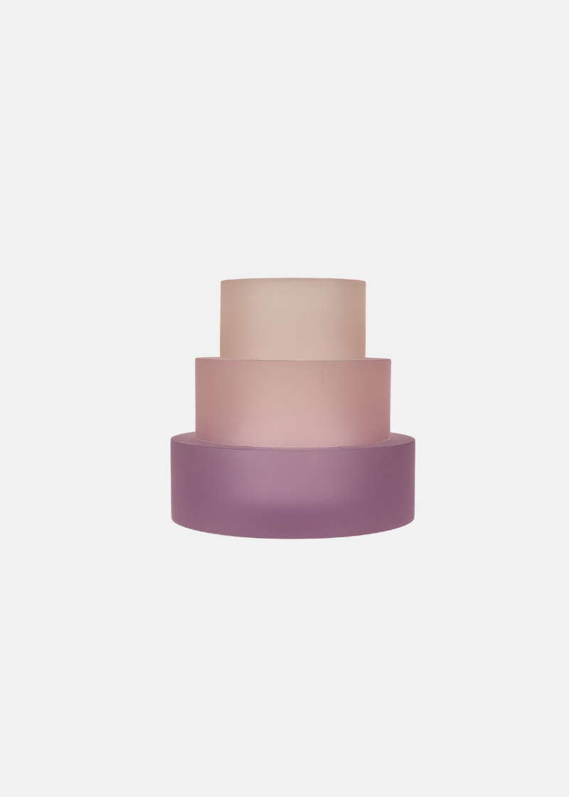 A small yet unique vase, made from leveled blocks of Resin with Lilac hues. Also has the option to add a clear top and transform the vase into a cake stand for your dessert tables.